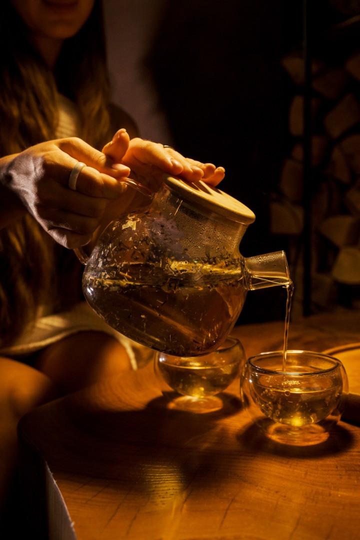 Травяной фирменный чай, домашнее варенье, башкирский мед, сушки
